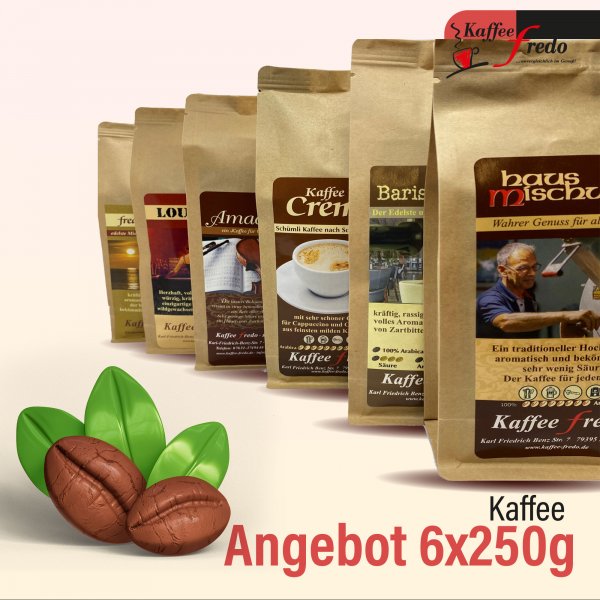6 x 250gr. Kaffee Angebot - 6 versch. Sorten